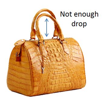 It MUST have a strap that I can put on my shoulder with one hand in one movement. This sounds simple, but it’s not. I want to be able to hold the strap/ handle at its apex, and in one swift action bend my arm and drop it securely onto my shoulder. If the drop between the strap and the bag isn’t quite long enough, it bumps my elbow, and goes back on the rack.